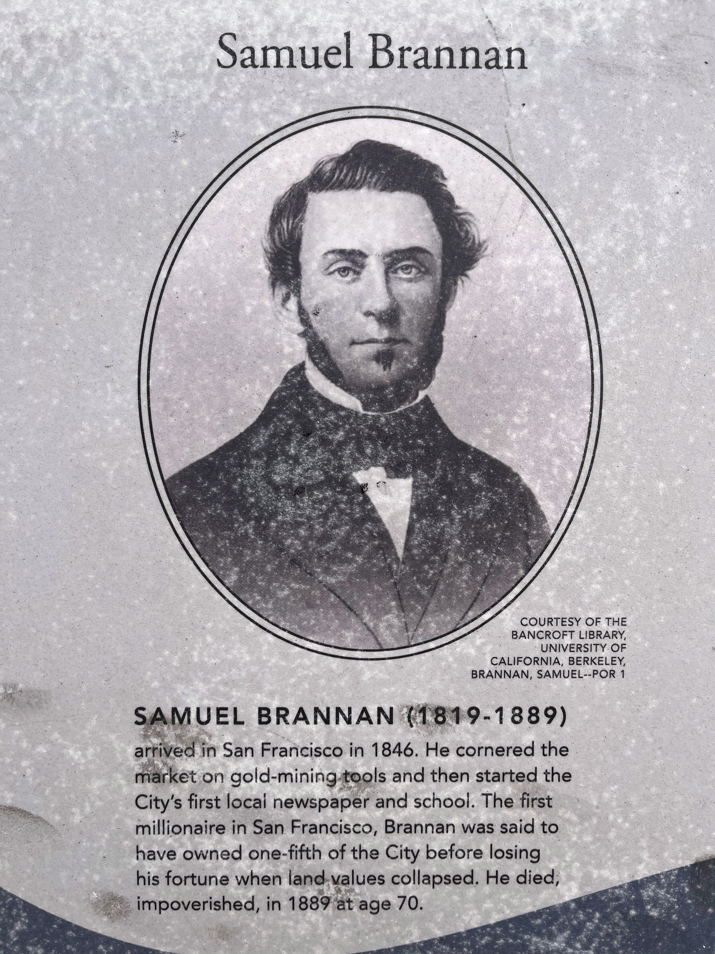 Also, on a plaque nearby, the boom to bust story of San Francisco's first Millionaire: Samuel Brannan